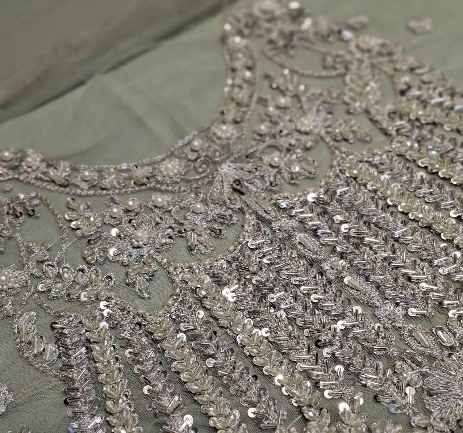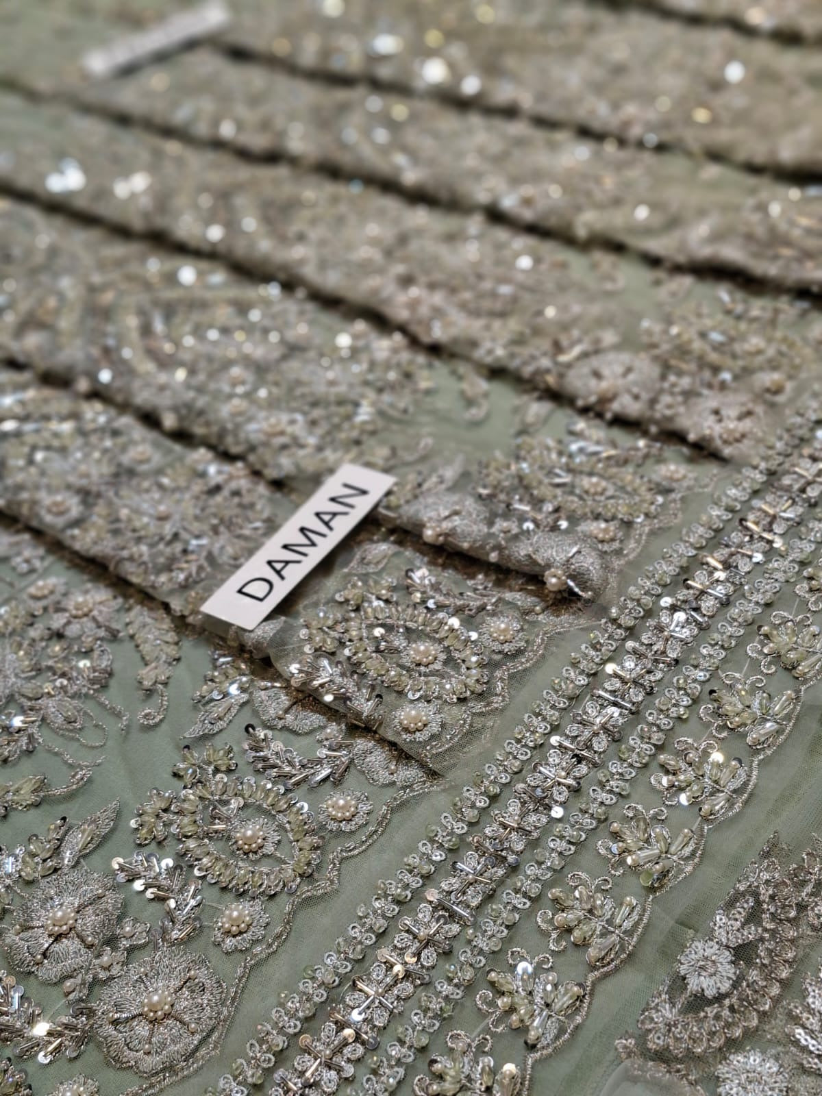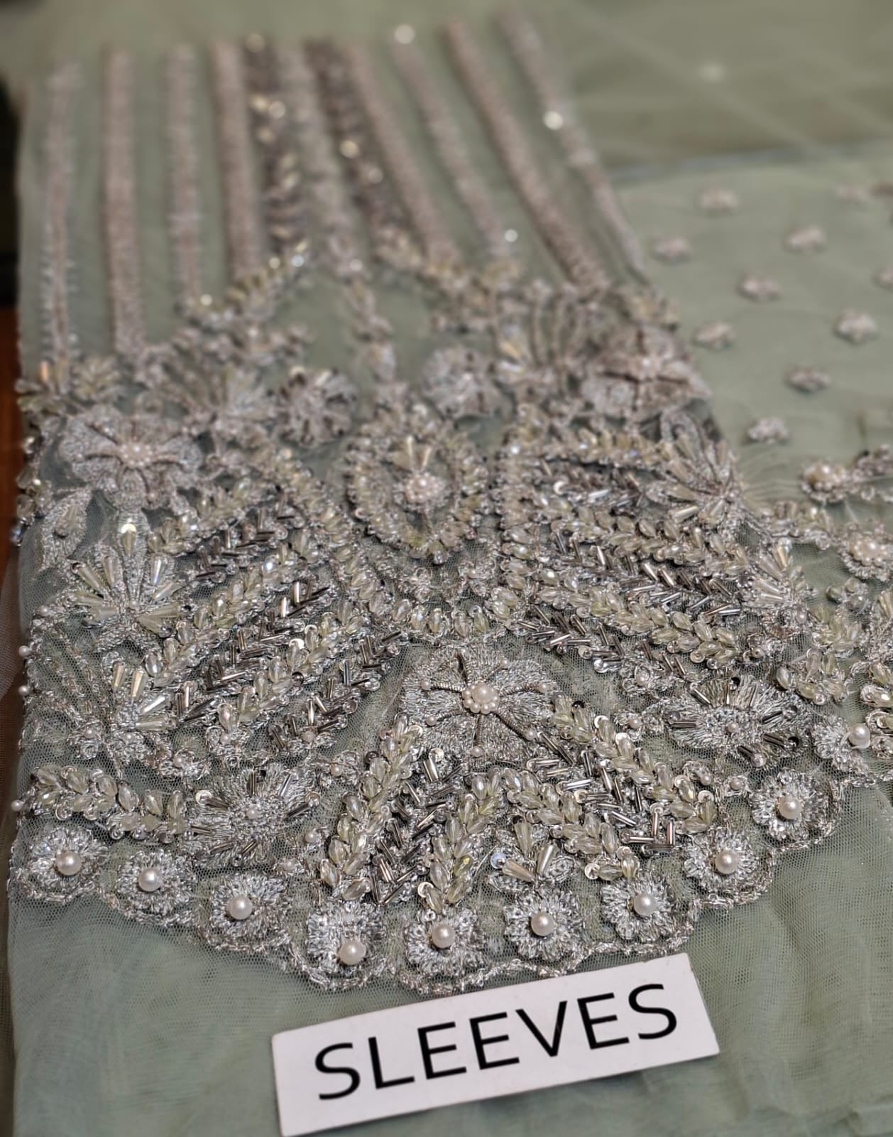 Experience elegance with the Akbar Aslam Luxury Bridals Collection featuring the Net Hand Embroidered Hyacinth. This exquisite piece showcases intricate hand embroidery on delicate net fabric, perfect for making your special day unforgettable. Its luxurious design combines traditional craftsmanship with modern sophistication, ensuring you stand out with grace and style. Ideal for brides seeking timeless beauty and exceptional quality.