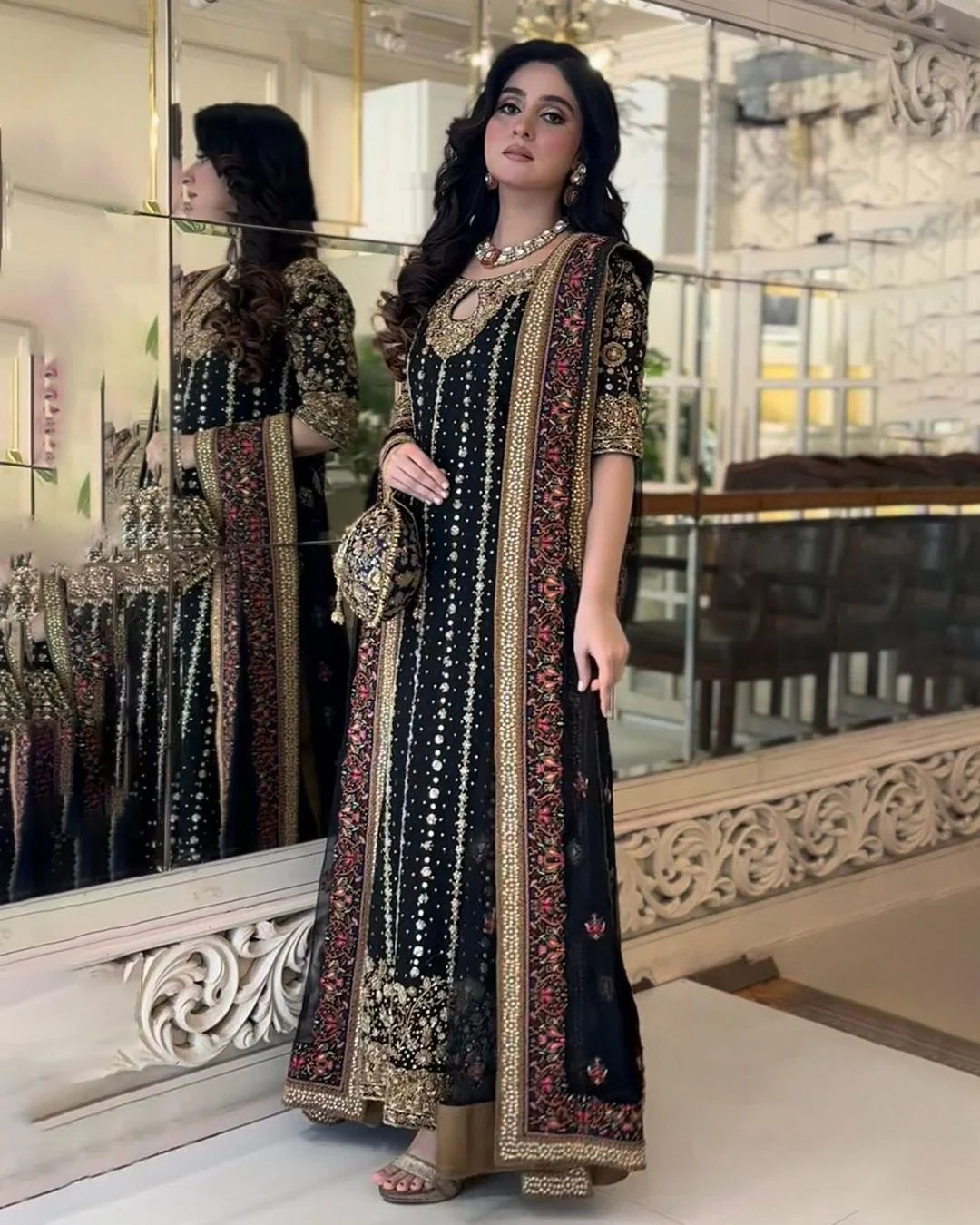- Hand Embellished Neckline (Organza)