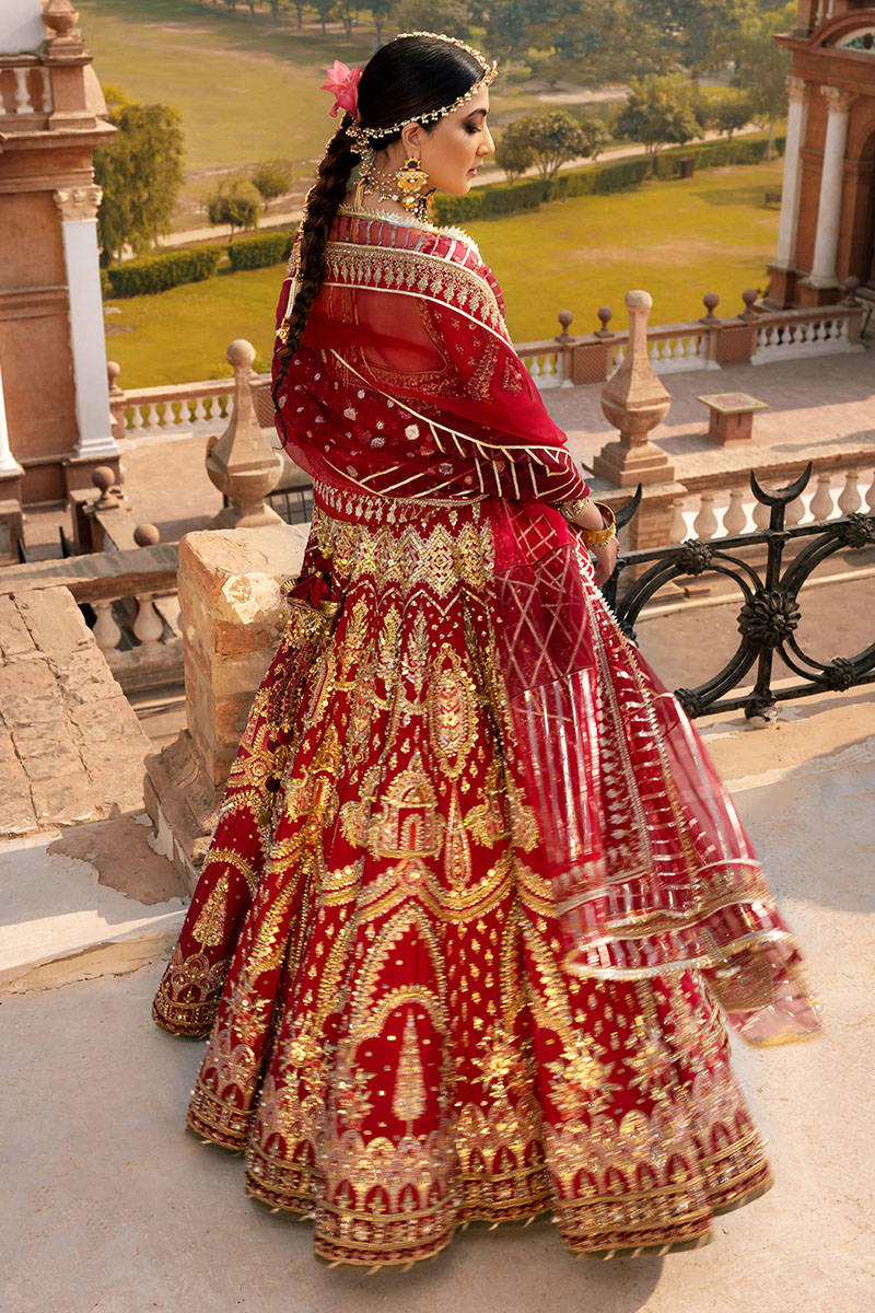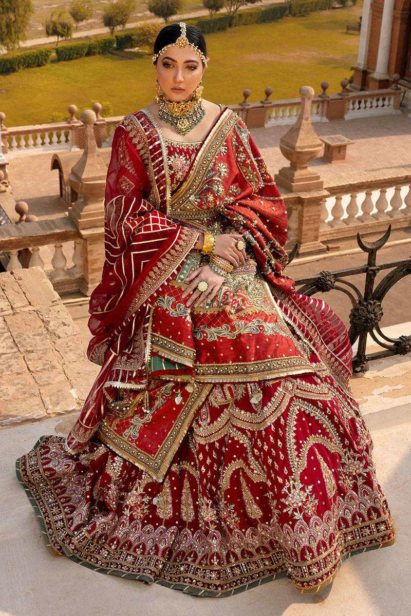 Nigarbano signature sindoori bridal set — is a timeless ode to elegance and craftsmanship. The ensemble features a Russian silk lehenga choli, intricately adorned with hand-crafted embellishments of dabka, kora, sitara, pearls, and marori. It is paired with an embroidered and embellished dupatta, highlighted with our signature chatta patti pallus, and completed with a digitally printed silk shawl featuring hand-embellished hammer work, dabka, pearls, and gotta.