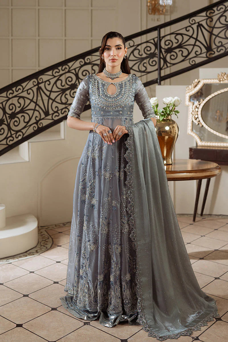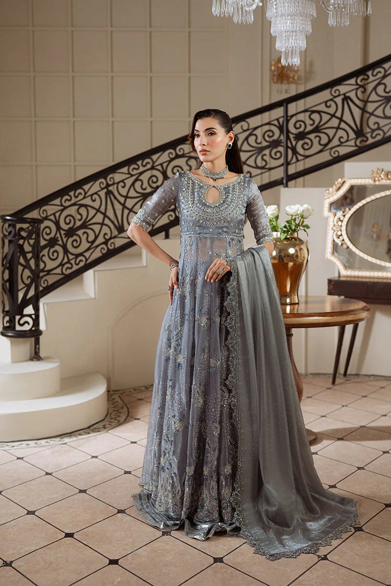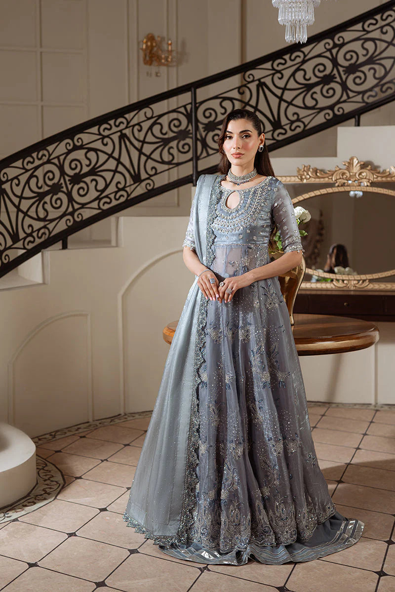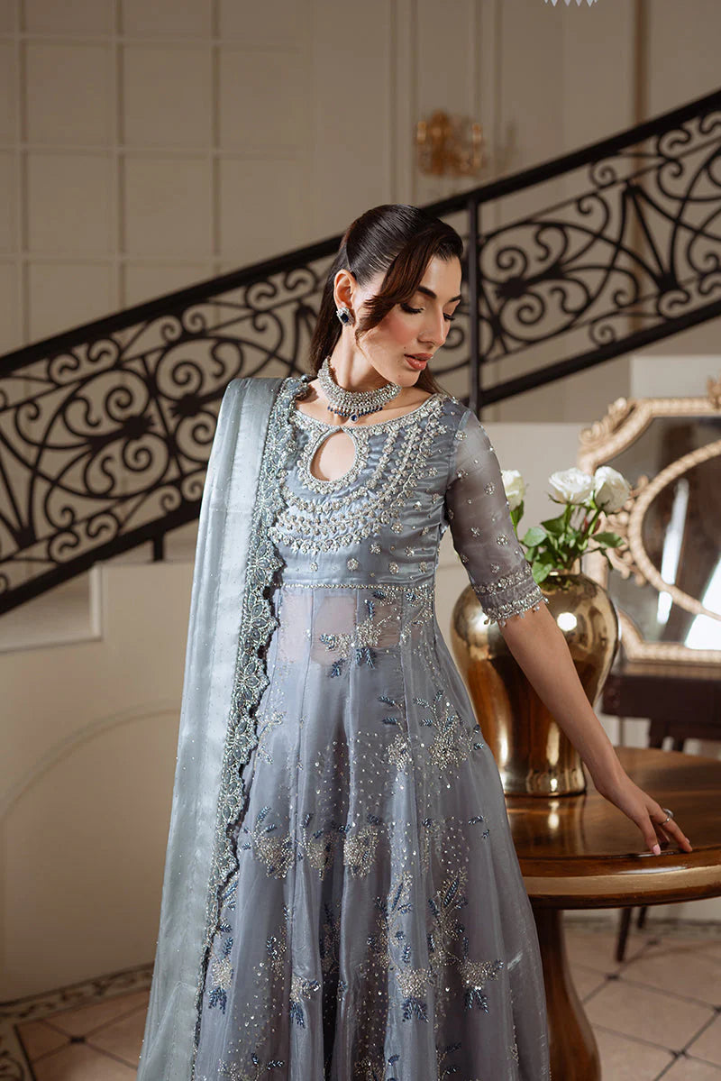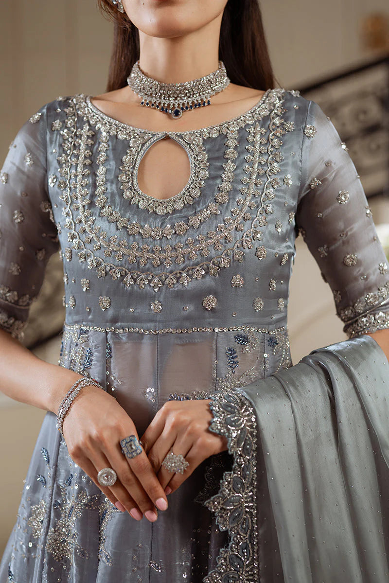 Inspired by the timeless elegance of Queen Rania, this grey-blue masterpiece by Anam Fatima Apparels exudes quiet royalty and sophisticated charm.